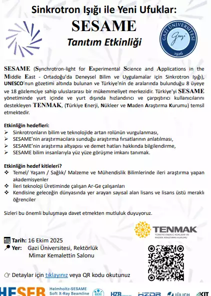 Gazi Üniversitesi Fen Fakültesi ile SESAME (Ortadoğu Sinkrotron Işığı Deneysel Bilim ve