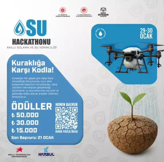 Teknoloji Platformu iş birliğiyle 29–30 Ocak 2026 tarihlerinde Konya'da Su Hackathonu düzenleneceği ve suyun geleceğini