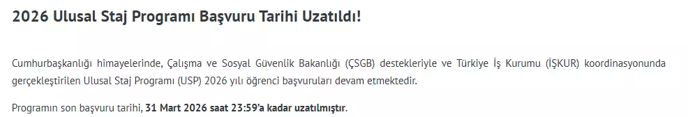 Ulusal Staj Programı (USP) 2026_Güncelleme